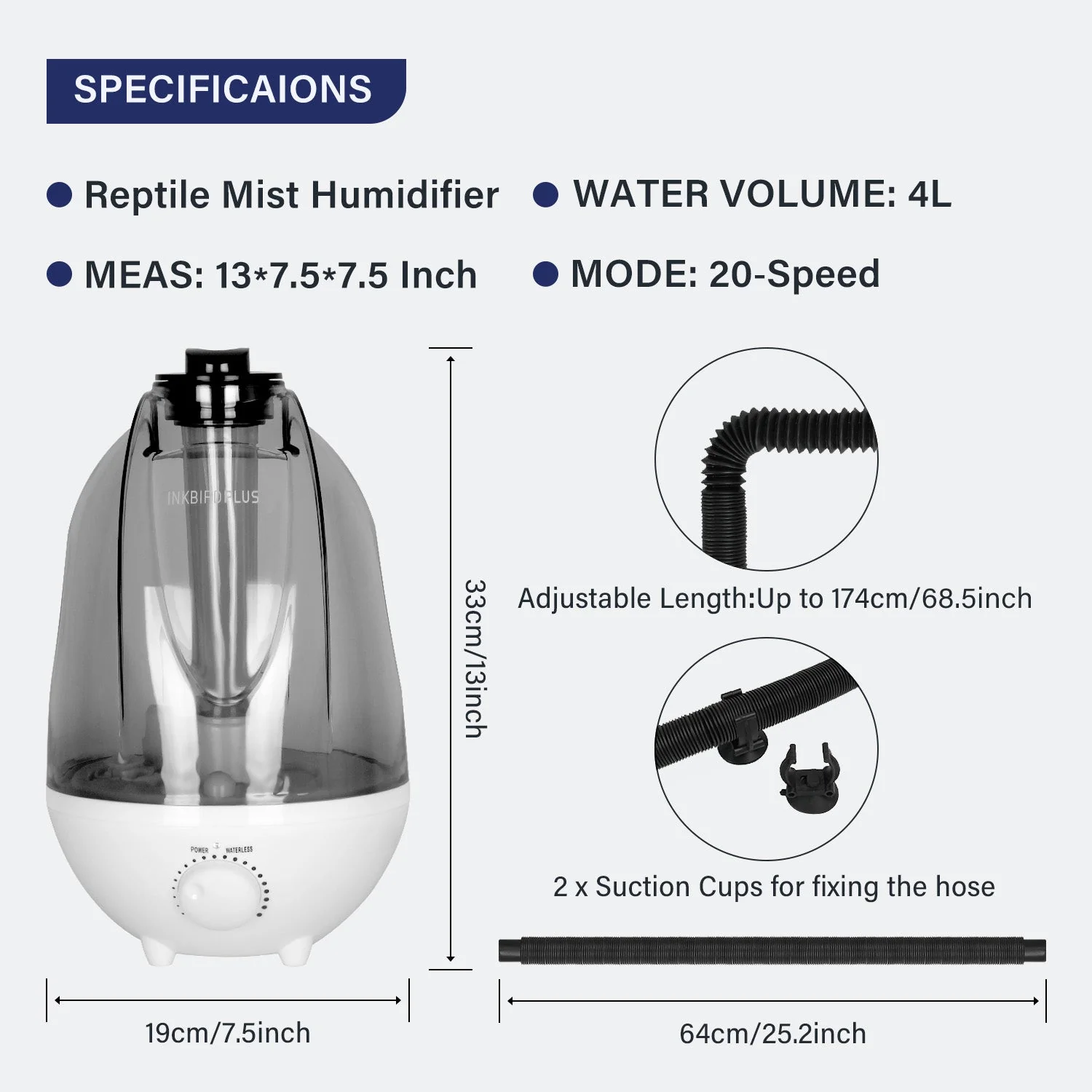 【4L Water Capacity & Max Fog Output】The reptile humidifier is equipped with a 4-Liter water tank, with adjustable fog output of up to 380ml per hour.
