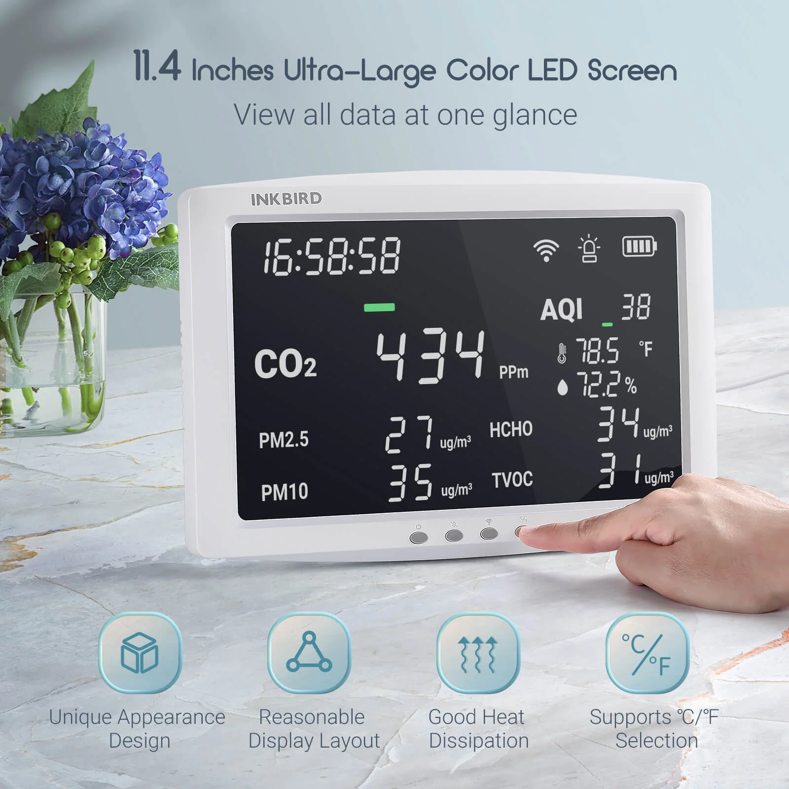 INKBIRD IAQM-128w 8-in-1 WiFi Air Quality Monitor